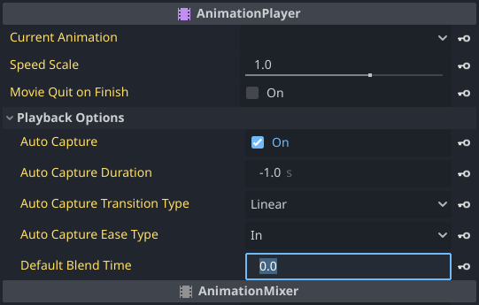 The first is to set a default blend amount to all animations using the playback_default_blend_time property1 on the AnimationPlayer node. This will apply a global blend time to all animations that don’t specify their own blend time.